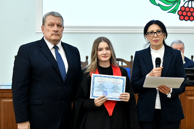 Особливий момент заходу – вручення дипломів з відзнакою найкращим студентам, які показали визначні успіхи у навчанні та науковій діяльності. Ректор НУБіП України В. Ткачук, вручаючи дипломи з відзнакою, висловив переконання, що вони стануть для магістрів предметом гордості й визначальним знаком приналежності до випускників НУБіП України, серед яких чимало відомих державних діячів та видатних особистостей.