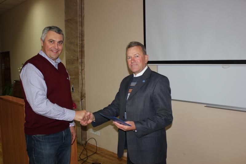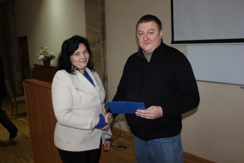 Засєкін Д.А., Чумаченко В.В. та Бойко Г.В. вручають свідоцтва про підвищення кваліфікації