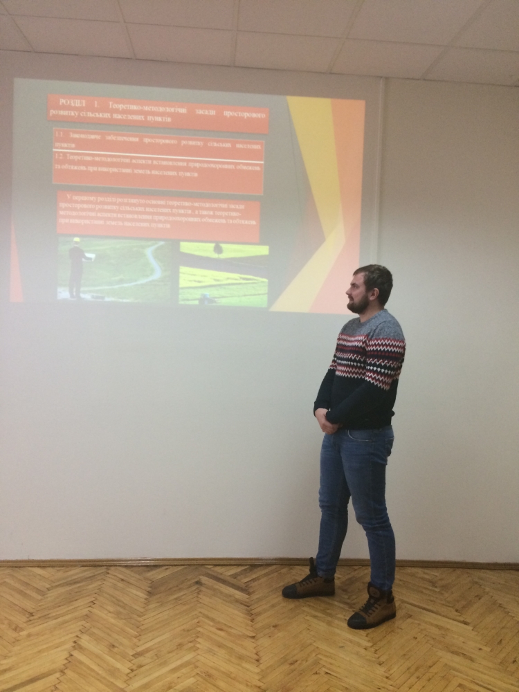 30 листопада 2018 року успішно відбувся попередній захист магістерських робіт магістрів другого року навчання кафедри землевпорядного проектування, де магістри кафедри представили результати своїх досліджень у рамках підготовки магістерських робіт за магістерською програмою «Землеустрій та кадастр» у вигляді презентацій.