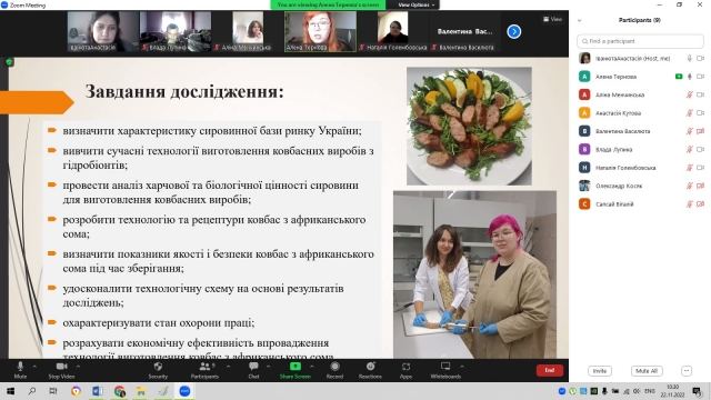 Атестація випускників освітньо-професійної програми підготовки фахівців освітнього ступеня «Магістр» спеціальності 181 «Харчові технології» освітніх програм «Технології зберігання та переробки водних біоресурсів» та «Технології зберігання, консервування та переробки м’яса» денної форми навчання проводилася в онлайн режимі, в період з 22 по 23 листопада 2022 року.