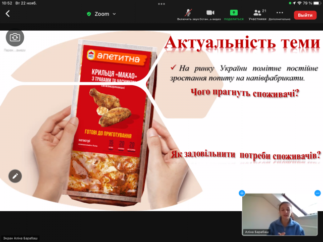 - «Удосконалення технології натуральних м’ясних маринованих напівфабрикатів» (Барабаш Аліна Валеріївна);