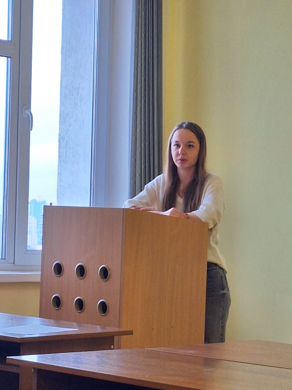 На захист завітала проректор з науково-педагогічної роботи та цифрової трансформації, доктор педагогічних наук, професор Олена ГЛАЗУНОВА, яка побажала гарного захисту, впевненості і подальшої співпраці в майбутньому у якості роботодавців. Також на захисті були присутні керівники кваліфікаційних робіт.