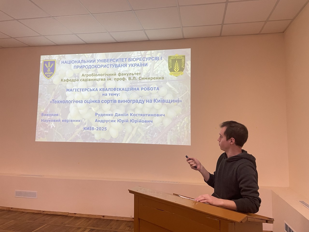 На агробіологічному факультеті 10-11 грудня 2025 року відбувся важливий етап у підготовці фахівців — захист магістерських кваліфікаційних робіт. Свої наукові досягнення презентували здобувачі другого рівня вищої освіти (магістри 2 року навчання) спеціальності «Садівництво, плодоовочівництво та виноградарство» з кафедр садівництва ім. проф. В.Л. Симиренка та овочівництва і закритого ґрунту. Ця подія є ключовим моментом, де молоді дослідники підтверджують свою кваліфікацію та демонструють результати багаторічних наукових розвідок.