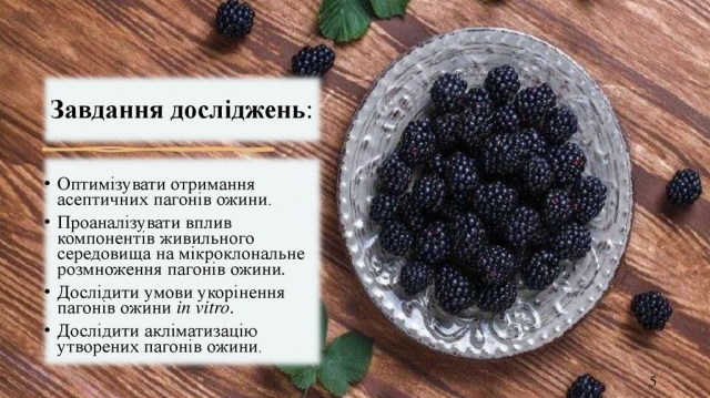 Захист робіт відбувався у формі дискусії між здобувачами та членами комісії й науковими керівниками магістерських робіт. В ході захисту робіт, члени комісії відзначили студентку ОПП «Екологічна біотехнологія та біоенергетика» Єлизавету Сокіл, яка представила дипломну роботу на тему «Мікроклональне розмноження промислово цінних ягідних культур», науковий керівник к.б.н., доцент Олена Кваско. Метою її роботи була оптимізація умов отримання асептичних рослин ожини та їх мікроклонального розмноження. Дипломна робота виконувалася в навчально-науковій лабораторії біотехнології та клітинної інженерії. Практична значущість роботи полягала в розробленні рекомендацій щодо ефективного мікроклонального розмноження рослин ожини з отриманням великої кількості посадкового матеріалу.