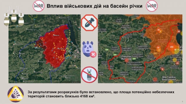Також важливим питанням сьогодення є збройна агресія РФ проти України. Війна впливає не тільки несе загрозу та шкоду життю та здоров'ю населенню, а ще й на навколишнє природне середовище. Зважаючи на той факт, що на початку повномасштабного вторгнення була окупована північна частина досліджуваного басейну річки Тетерів, наслідки відчуваються вже й зараз. Підриви мостів, знищення нафтобаз, знищення військової техніки, детонація вибухонебезпечних речовин несуть за собою пряму шкоду для всього навколишнього середовища, в тому числі й для річки Тетерів.
