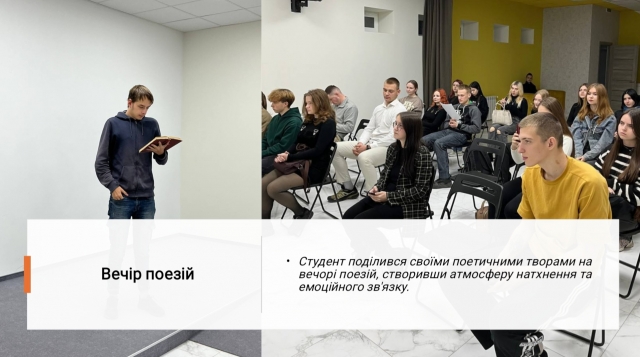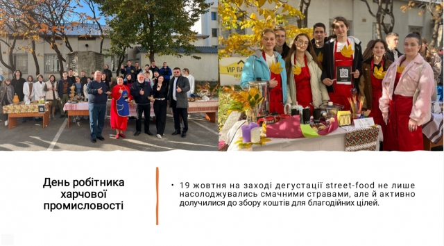 - Фахівець: Протягом року студенти активно долучалися до навчальних семінарів, тренінгів та майстер-класів. Особливий інтерес викликали заходи, присвячені інноваційним технологіям у харчовій промисловості, які проводили провідні експерти галузі.