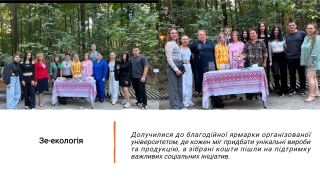 - Громадянин: Організація благодійних акцій, таких як допомога дітям, людям похилого віку, ЗСУ і друзям нашим меншим та акція «Чисте довкілля», сприяла вихованню соціальної відповідальності у студентів.