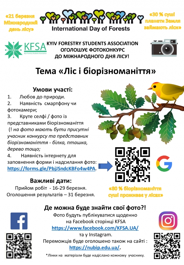 Студентський гурток Kyiv Forestry Students Association долучається до святкування Міжнародного дня лісу та оголошує фотоконкурс.