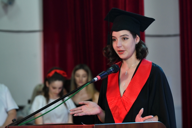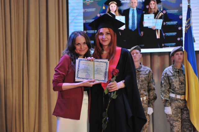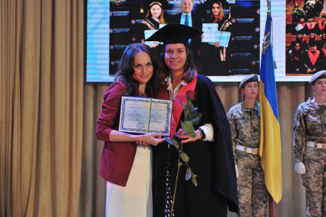 Від випускників зі словами вдячності виступила Ольга Василишин, яка подякувала ректорату і деканату за організацію на високому рівні освітнього процесу в цей не простий час для нашої країни та професорсько-викладацькому складу за надані знання та практичні уміння.