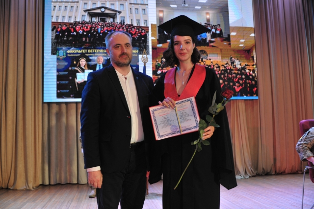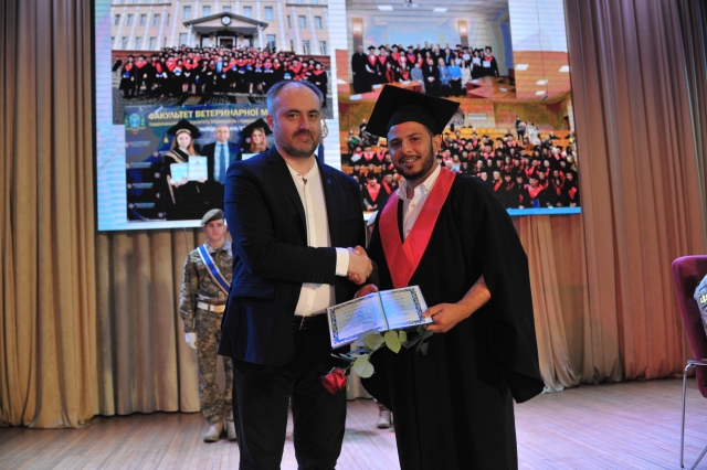 Щирі слова привітання пролунали від начальник науково-дослідної частини, Володимира Отченашка, який сердечно привітав їх із завершенням навчання і наголосив, що вони є фахівцями, які забезпечує здоров’я тварин та оберігають людство. Побажав випускникам успіхів у подальшій роботі та активно працювати над досягненням своє мрії і надалі розвиватися як висококваліфіковані лікарі ветеринарної медицини. Не забувати про рідну alma mater, високо носити звання випускника НУБіП України.