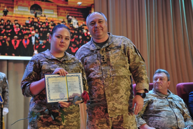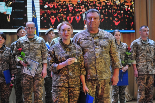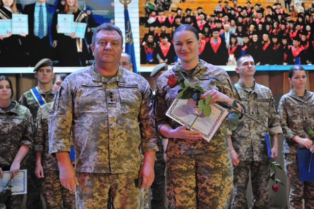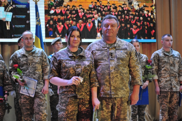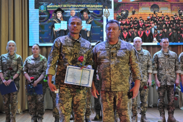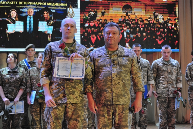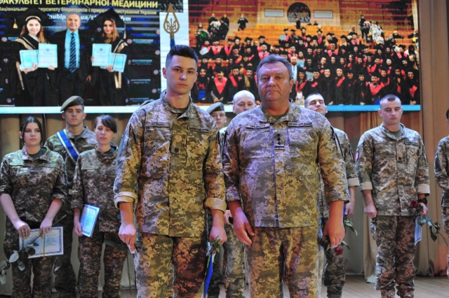 Також було вручено пагони лейтенанта випускникам факультету ветеринарної медицини, які проходили підготовку на кафедрі військової підготовки.