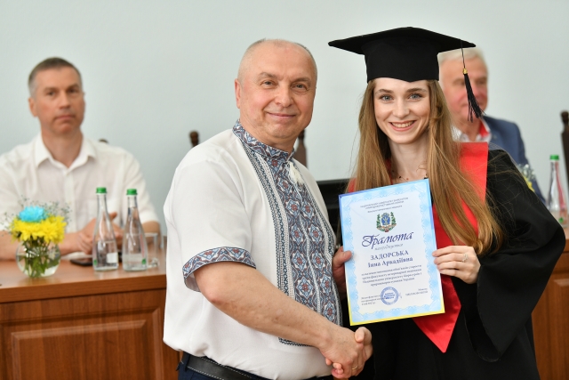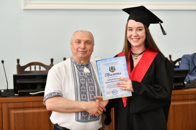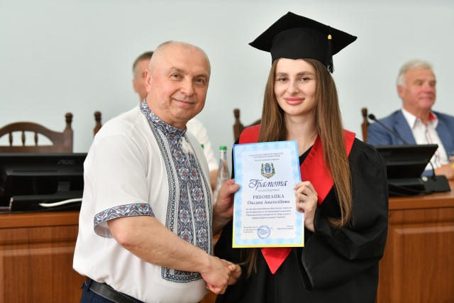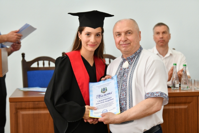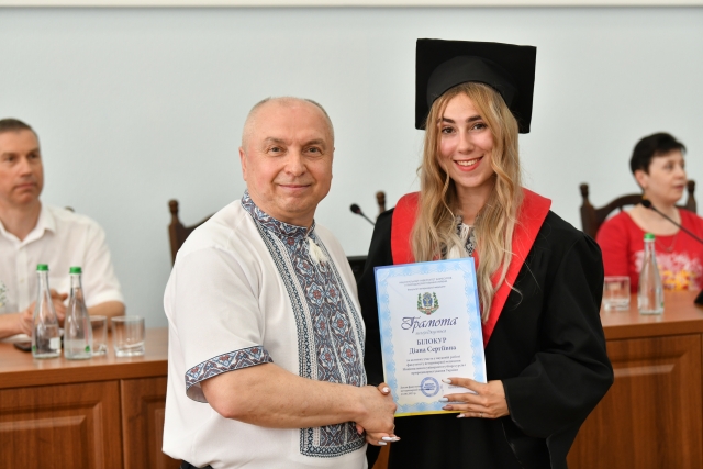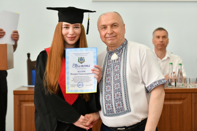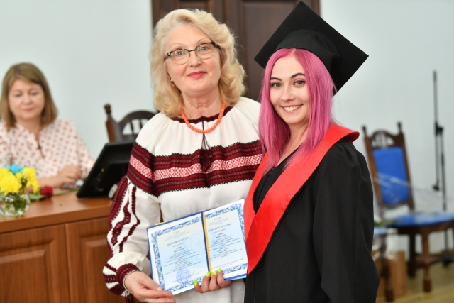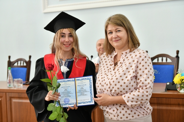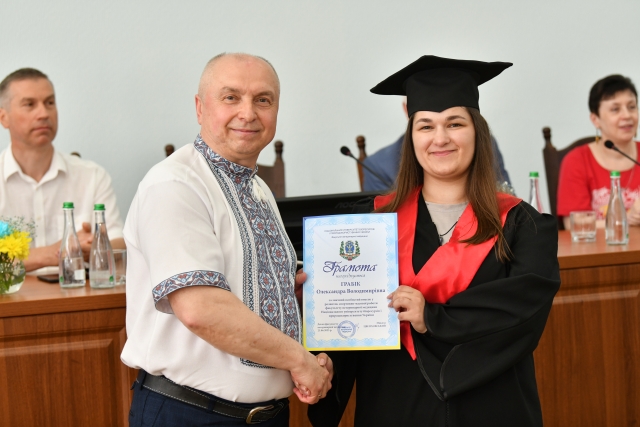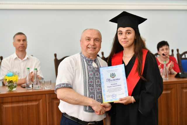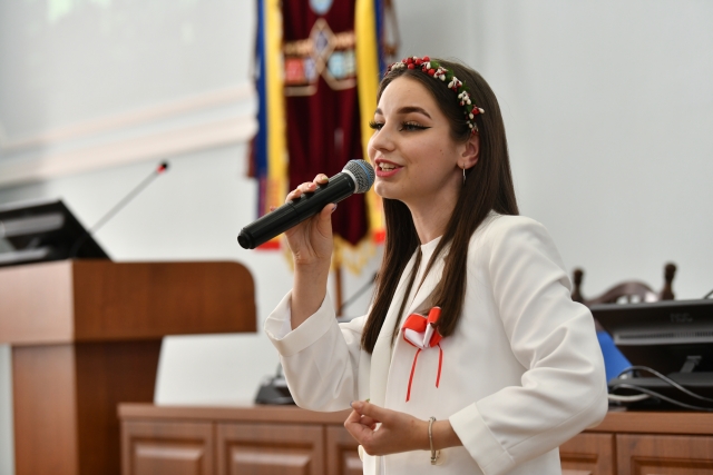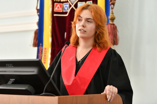 Від випускників зі словами вдячності виступила Ольга Красновид, яка подякувала ректорату і деканату за організацію на високому рівні освітнього процесу в цей не простий час для нашої країни та професорсько-викладацькому складу за надані знання та практичні уміння.