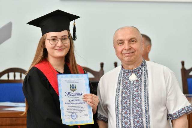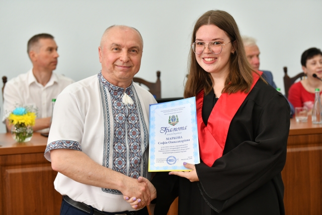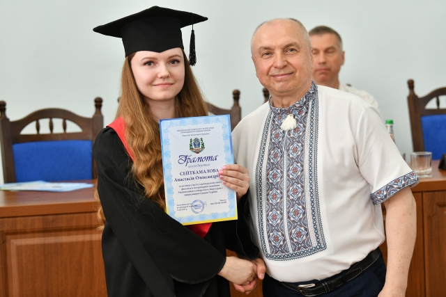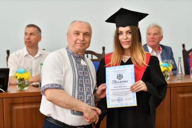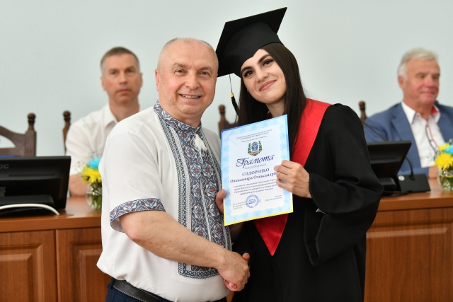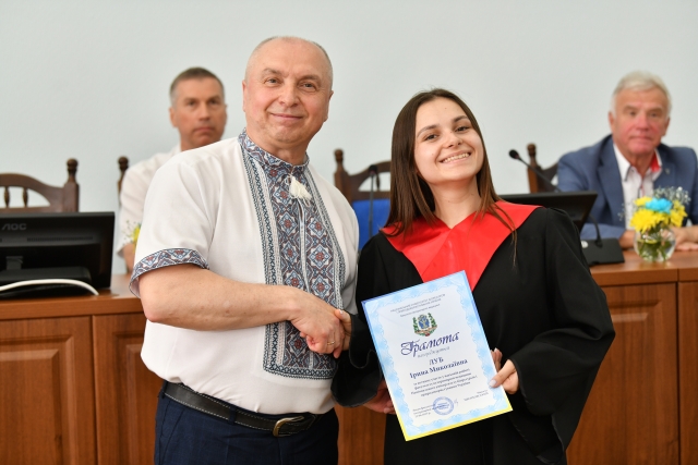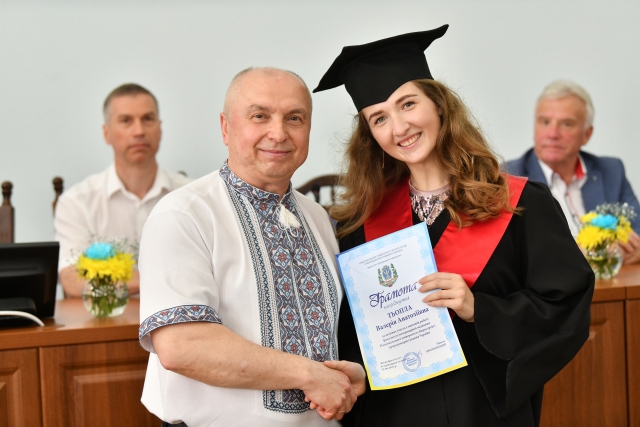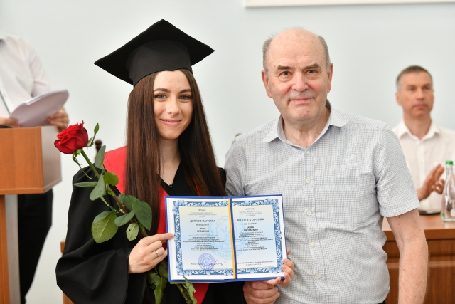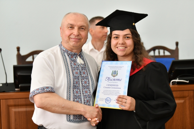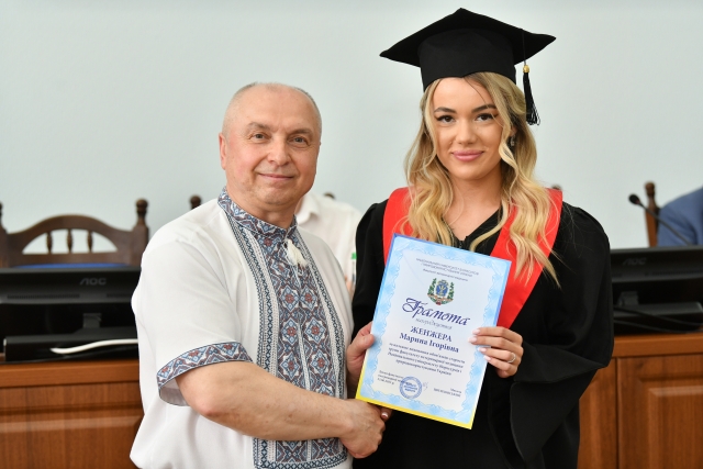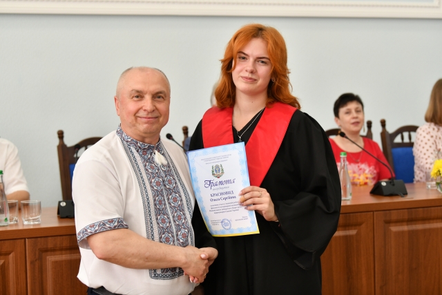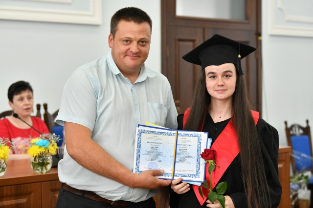 Від випускників зі словами вдячності виступила Ольга Красновид, яка подякувала ректорату і деканату за організацію на високому рівні освітнього процесу в цей не простий час для нашої країни та професорсько-викладацькому складу за надані знання та практичні уміння.