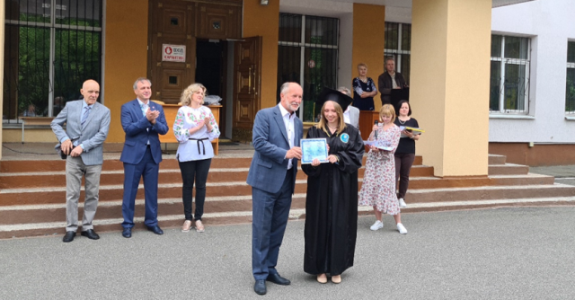 Важливу місію від провідної енергетичної компанії ДТЕК виконала Наталія Коломієць, провідний фахівець з організації навчання центру підготовки та навчання персоналу. Наталія Павлівна привітала всіх випускників та вручила цінні подарунки від компанії студентам, які навчалися за програмою дуальної освіти і продемонстрували високий рівень підготовки. Найближчим часом всі вони будуть працевлаштовані в компанії уже як дипломовані фахівці.