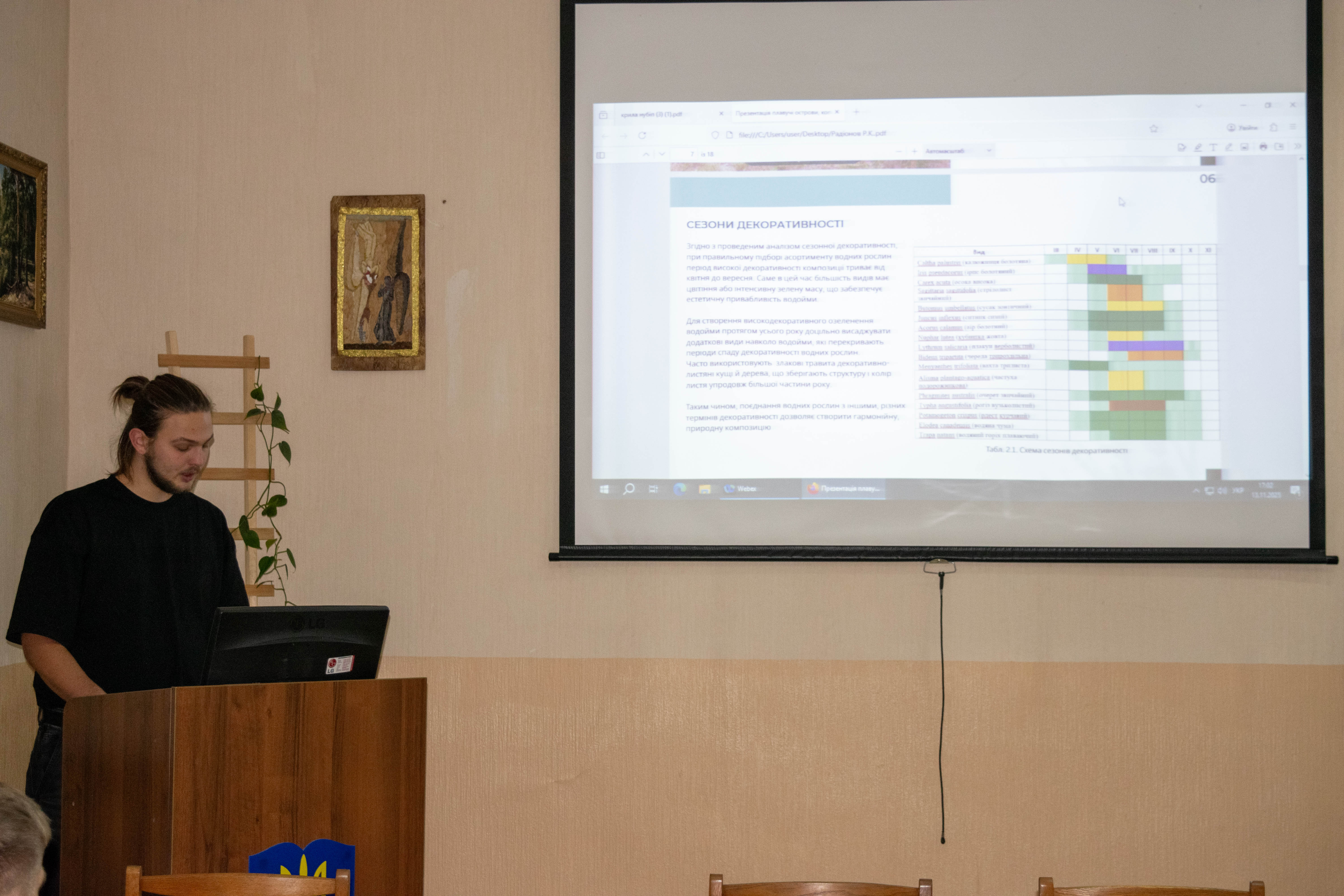 Окрема увага була приділена науковим підходам, що відповідають поточним європейським пріоритетам - принципам сталого розвитку, циркулярної економіки та вимогам «Зеленого курсу». Представлені роботи не лише демонстрували творчість і ґрунтовність студентських досліджень, а й окреслили можливості для їх практичного впровадження в умовах післявоєнної відбудови та трансформації лісового сектору України. Цього року до наукових доповідей долучилися також студенти Черкаського державного технологічного університету, які навчаються на освітній програмі «Лісове господарство»