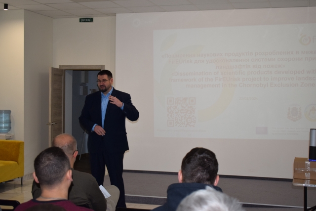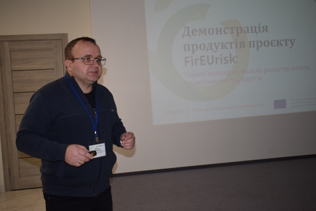 22 лютого 2024 р. в ННІ лісового і садово-паркового господарства НУБіП України відбувся науково-практичний семінар «Поширення наукових продуктів розроблених в межах проєкту FirEUrisk для удосконалення системи охорони природних ландшафтів від пожеж».