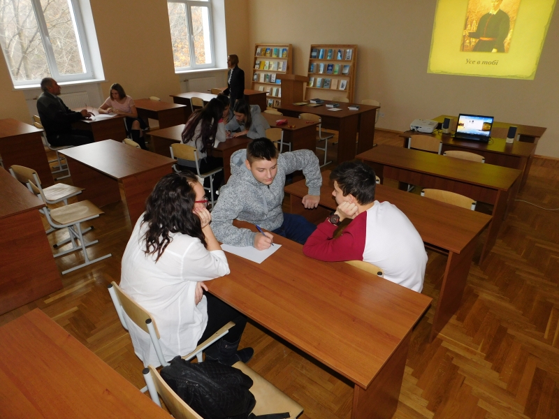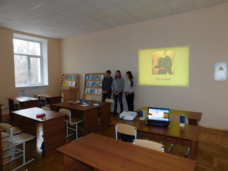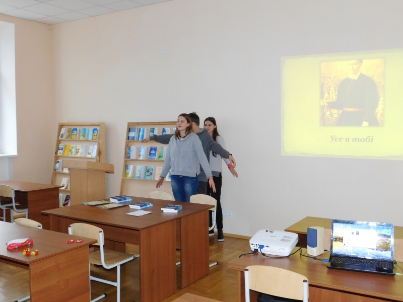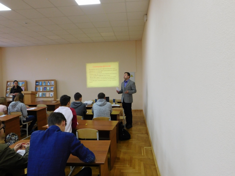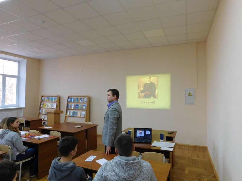 Далі доц. Самарський А.Ю. представив школярам мультимедійну презентацію про маловідомі сторони життя Григорія Савича, його навчання та подорожі Європою, принципами його педагогіки тощо.