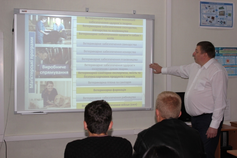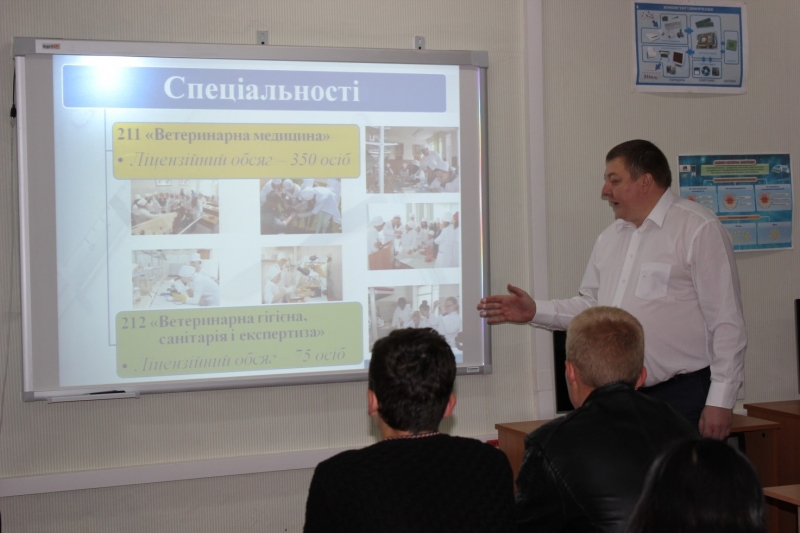За допомогою презентації випускники ознайомились із спеціальностями 211 «Ветеринарна медицина» та 212 «Ветеринарна гігієна, санітарія і експертиза», за якими ведеться підготовка на факультеті ветеринарної медицини.