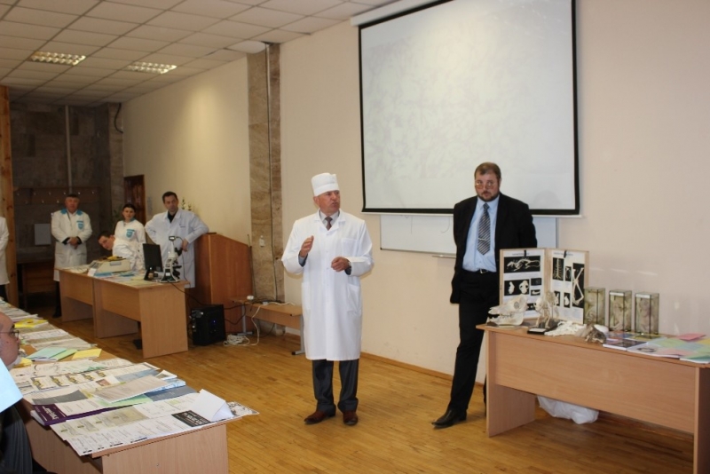 I місце у виставці-конкурсі наукових здобутків отримав колектив кафедри паразитології та тропічної ветеринарії. Завідувач кафедри, професор Наталія Сорока отримала з рук декана факультету, академіка Миколи Цвіліховського. Диплом та солодкий подарунок.
