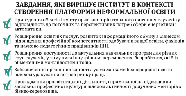 Живе спілкування із замовниками таких освітніх послуг доводить необхідність розширення тематик та форм неформальної освіти у відповідності до освітніх програм спеціальностей, за якими готуються фахівці в інституті.