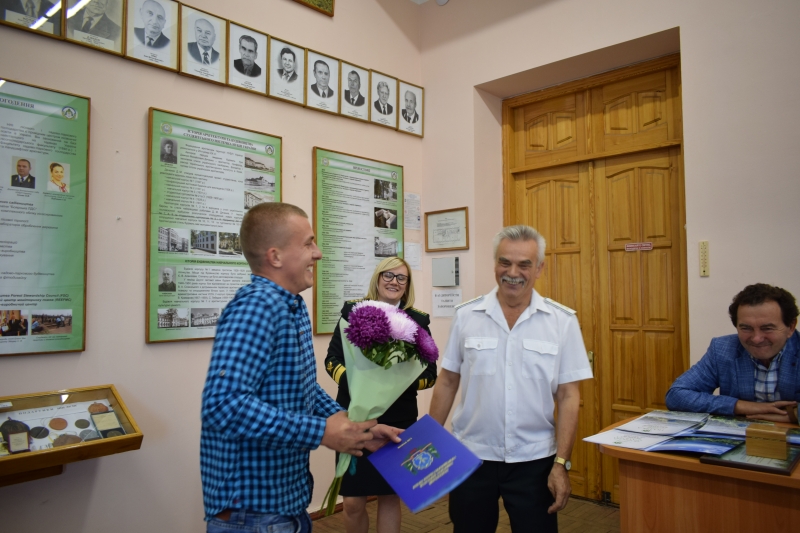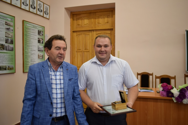 За сумлінне і відповідальне виконання обов’язків з виховання молодого покоління лісівників та з нагоди Дня працівника лісу завідувач кафедри ботаніки, дендрології та лісової селекції, Голова товариства лісівників України Юрій Марчук нагородив цінним подарунком, годинником з символікою Товариства лісівників України Сливу Олександра Анатолійовича, директора Ботанічного саду НУБіП України.