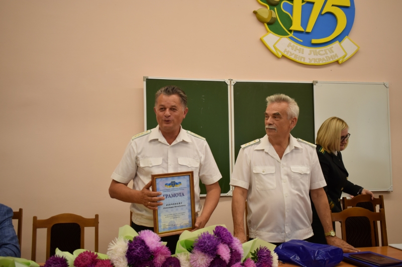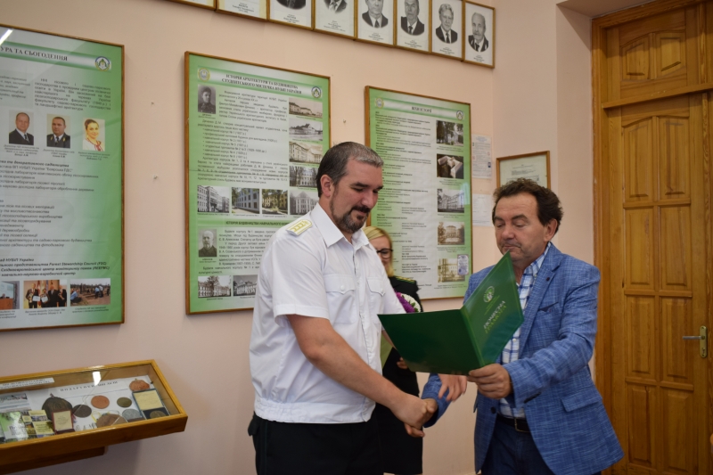 За сумлінне і відповідальне виконання обов’язків з виховання молодого покоління лісівників та з нагоди Дня працівника лісу з рук заступника Голови Державного агентства лісових ресурсів України Володимира Бондаря подяки отримали: Сидоренко Ірина Олександрівна, доцент кафедри ландшафтної архітектури та фітодизайну; Миронюк Віктор Валентинович, доцент кафедри таксації лісу та лісового менеджменту та Майданенко Вадим Миколайович, завідувач лабораторії Ботанічного саду НУБіП України.
