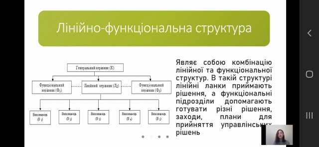 Лектором було розкрито суть функції «організація», ознайомлено студентів з основними теоріями організації, детально розглянуто основні складові організаційного процесу та будову організаційних структур.