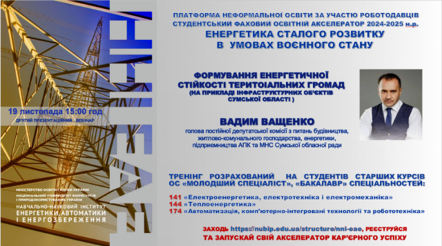 Вадим ВАЩЕНКО на студентському фаховому освітньому акселераторі в ННІ енергетики, автоматики і енергозбереження розкрив шляхи забзепеченняя енергетичної стійкості територіальних громад