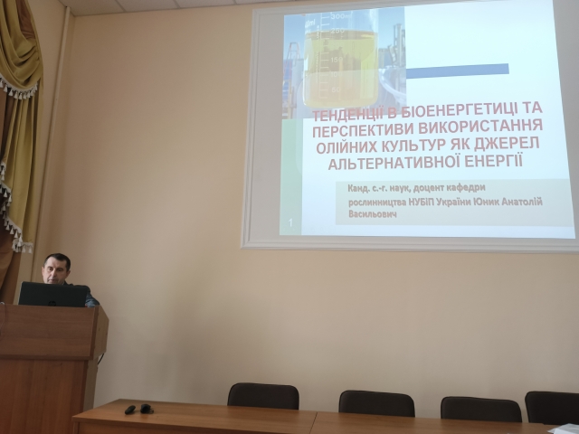 Члени Вченої ради заслухали наукову доповідь доцента кафедри рослинництва Анатолія Юника на тему «Тенденції та перспективи використання олійних культур як джерел альтернативної енергії». На актуальності і важливість пошуку альтернативних джерел енергії в умовах сьогодення наголосила завідувач кафедри рослинництва професор, академік НААН Світлана Каленська під час обговорення ключових питань наукового напрямку.