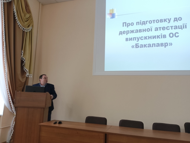 У своєму виступі заступник декана Володимир Завгородній окреслив основні питання щодо підготовки до державної атестації випускників ОС «Бакалавр», акцентував увагу на основних положеннях і вимогах до її проведення. Також важливим питанням було виділено підготовка до початку сесії.