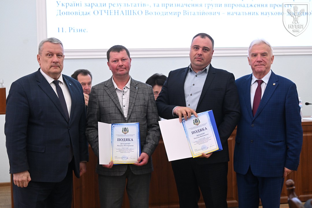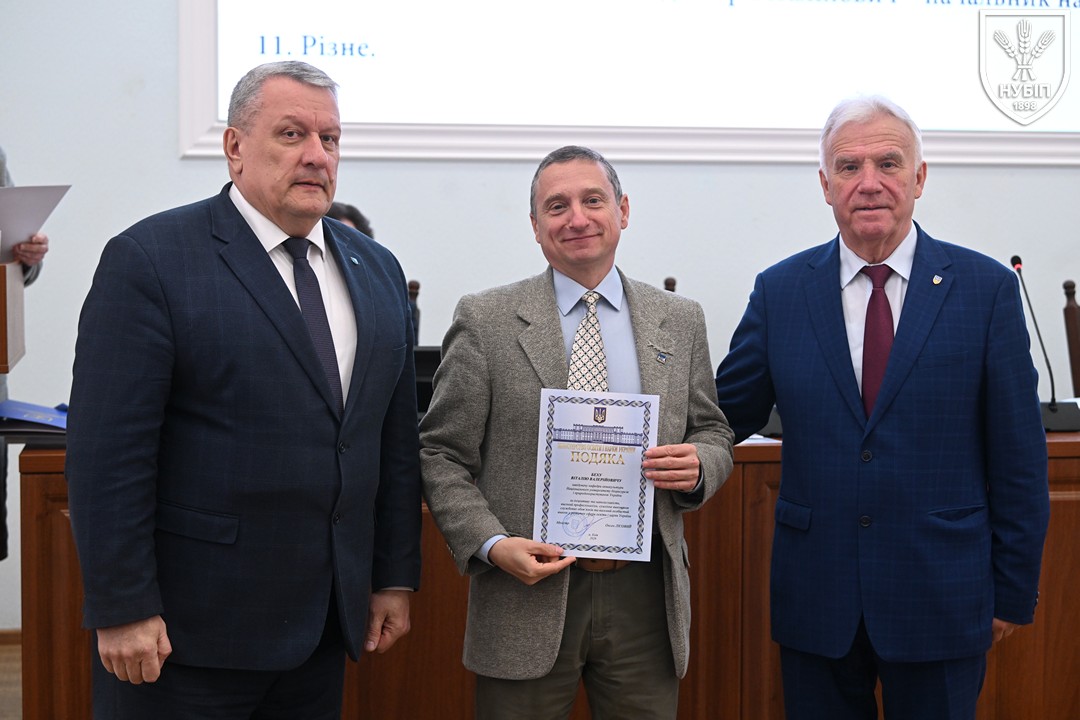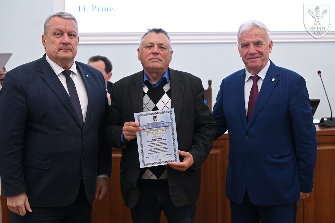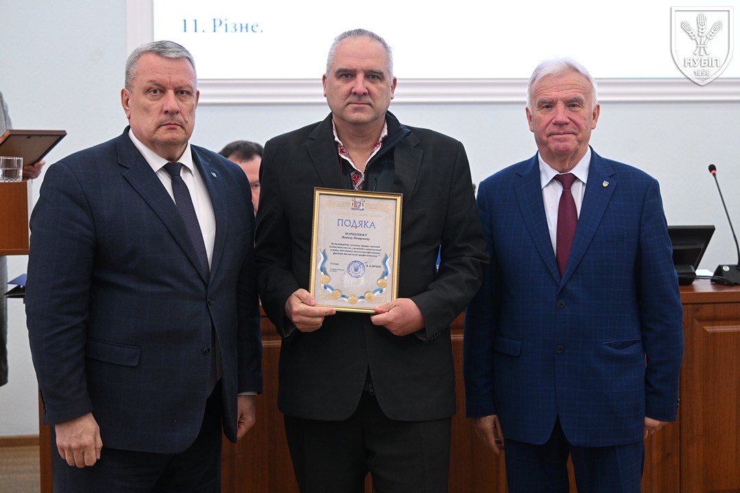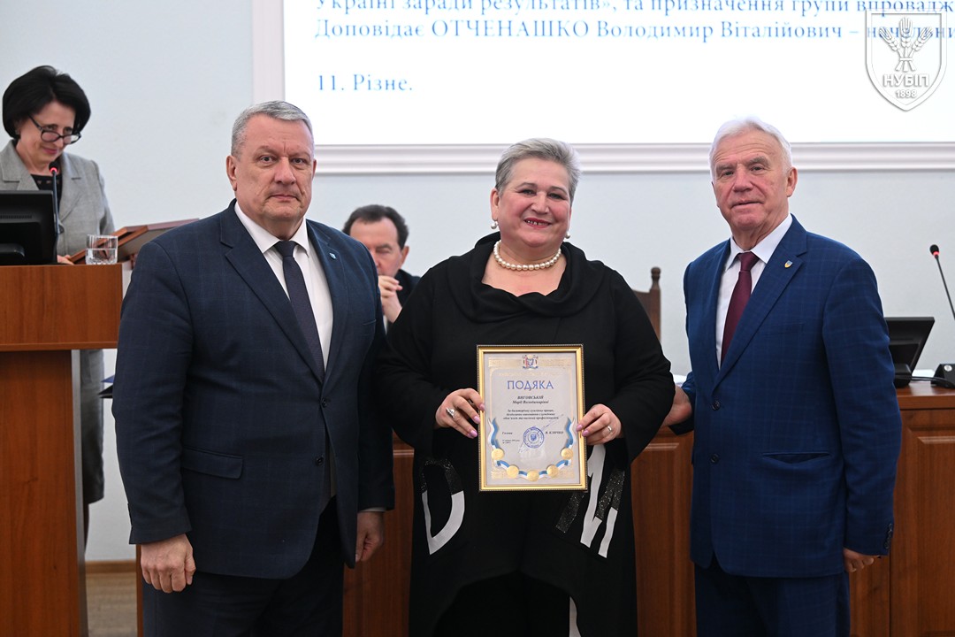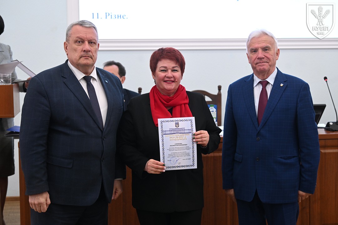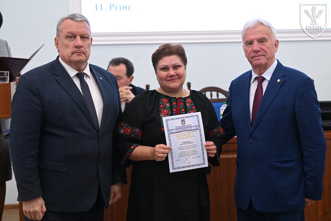 За традицією перед початком розгляду питань порядку денного ректор Вадим ТКАЧУК та голова вченої ради Станіслав НІКОЛАЄНКО вручили нагороди та відзнаки колегам. Грамоту Міністерства освіти і науки України — Володимиру МЕЖЕНСЬКОМУ, Подяку Міністерства освіти і науки України — Віталію БЕХУ, Людмилі КЛИМЕНКО, Наталії НОВИЦЬКІЙ, Почесну грамоту Київського міського голови — Ірині КОНОНЕНКО, Подяку Київського міського голови — Марії ВИГОВСЬКІЙ, Вадиму МАРЦЕНЮКУ, Олесі ОХРІМЕНКО, подяки НУБіП України — Михайло ЛЕУСЬКИЙ та Олексій НОГАРЕВ. Сертифікат «Спеціальності з майбутнім» та «Золоте перо» як символ академічної досконалості, отримані за результатами міжнародного конкурсу, вручені гаранту освітньої програми «Технологія виробництва та переробки продукції тваринництва» Анні ЛИХАЧ та декану факультету тваринництва та водних біоресурсів Руслану КОНОНЕНКУ.