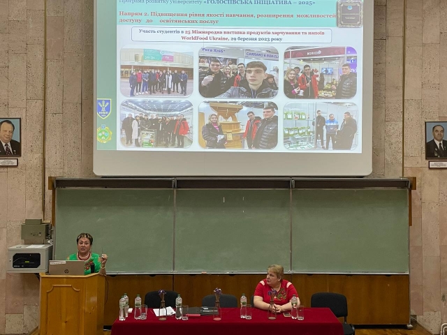 Також відмітила, що на факультеті активно впроваджується і реалізується Концепція підготовки студентів ОС «Бакалавр» – проведення лабораторно-практичних занять в умовах харчових виробництв; ОС «Магістр» – проведення лекцій, науково-дослідних робіт з виконання магістерських досліджень, майстер класів: приготування ковбаси вареної «Дитяча вершкова», «Корисні властивості чаю», «Удосконалення практичних навичок у використанні сучасного кулінарного смарт-робота Thermomix», «Технологія випікання великодніх пасок», «Інноваційні технології мꞌяких сирів», «Винна церемонія», «Маркування харчових продуктів», «Борщ як частина українського культурного коду» та інші.