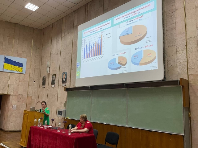 У ході доповіді декан факультету, професор Лариса Баль-Прилипко доповіла присутнім про підсумки діяльності науково-педагогічного колективу факультету, розвиток матеріально-технічної бази та завдання на 2023/2024 навчальний рік. Доповідач зосередила увагу присутніх на підсумках подання заяв від вступників ОС Бакалавр на основі повної загальної середньої освіти та освітньо-професійної програми підготовки фахівців ОС Магістр.