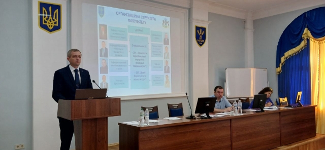 Потому колектив заслухав доповідь декана Руслана Кононенка щодо основних пунктів життєдіяльності факультету у 2022-2023 навчальному році та окреслив нові завдання та виклики на 2023-2024 навчальний рік. Він зазначив що колектив факультету постійно працює на підвищення рівня навчальної, навчально-методичної, інноваційної, виховної роботи, покращення матеріально-технічного забезпечення кафедр, навчальних та наукових лабораторій, міжнародної діяльності. Так, введено в дію оновлену навчальну лабораторію «Якості м’яса»; продовжуються ремонтні роботи в навчально-науковій лабораторії технологій виробництва продукції птахівництва та в проблемній лабораторії кормів та кормових добавок; проведено капітальний ремонт 16 кімнат в гуртожитку № 11 та триває ще у 8 кімнатах. Основну увагу Руслан Кононенко звернув на надзвичайно складні умови в яких проходить вступна компанія. На завершення свого виступу Він зазначив, що кожен науково-педагогічний працівник повинен розуміти, що його професія пов'язана із постійним самовдосконаленням, навчанням протягом усього життя, бути професіоналом своєї справи, пишатися своєю роботою.