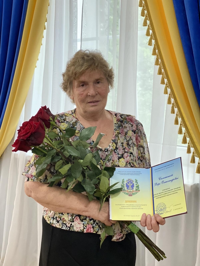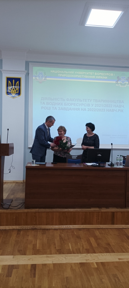 Незважаючи на тяжку ситуацію в країні вчена рада розпочалася з приємної події – привітання Віри Салганської, старшого лаборанта кафедри технологій у птахівництві, свинарстві та вівчарстві з присудженням їй звання ‟Заслужений працівник НУБіП України”.