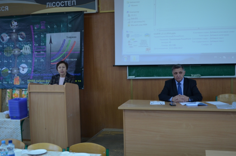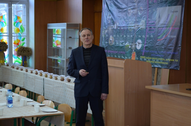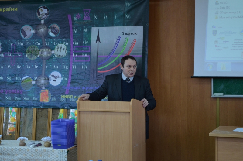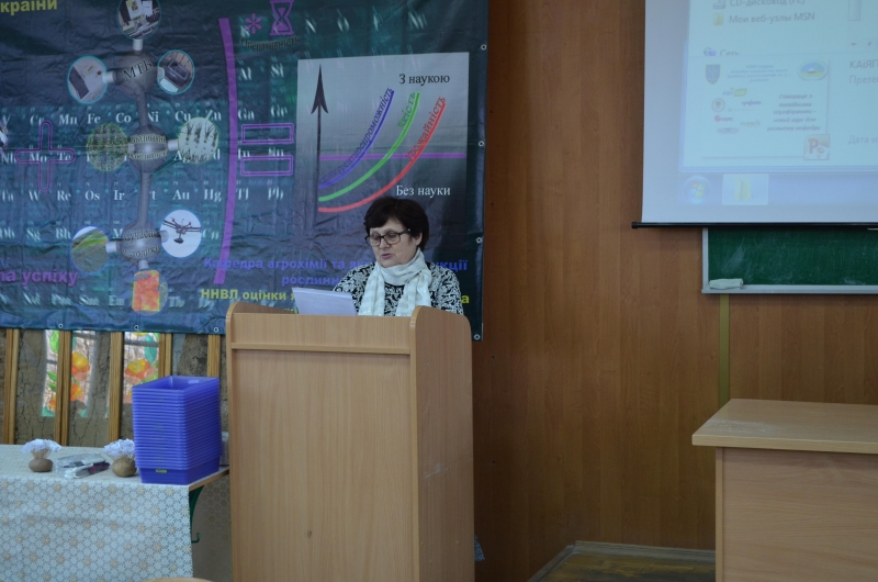 Про співпрацю кафедри агрохімії та якості продукції рослинництва ім. О. І. Душечкіна з провідними агрофірмами доповів її завідувач професор Бикін Анатолій Вікторович. Доповідач акцентував увагу, що саме завдяки такій діяльності кафедра має можливість покращити матеріально-технічну базу та підготувати висококваліфікованого спеціаліста. Кафедра співпрацює з Українською асоціацією виробників картоплі, агрофірмами – Агрілаб, Сінгента, Єврохім, HZPC та іншими. За минулий рік спільно було організовано та проведено три Міжнародні тематичні семінари «Система живлення картоплі», «Мінеральні добрива: інновації та перспективи», «Добрива в системі технологій вирощування сільськогосподарських культур» та Міжнародну науково-практичну конференцію "Управління живленням та стресами рослин у сучасних технологіях".