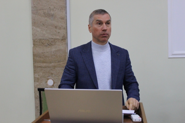 У вступному слові декан факультету Микола Цвіліховський проінформував членів вченої ради про поточну ситуацію і події, які відбулися в університеті та на факультеті.