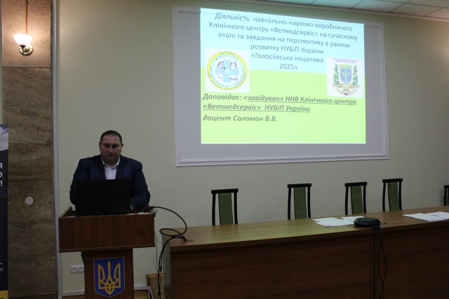 Про діяльність ННВ клінічного центру «Ветмедсервіс» на сучасному етапі та завдання на перспективу в рамках програми розвитку НУБіП України «Голосіївська ініціатива – 2025» доповідав керівник ННВ клінічного центру доцент В’ячеслав Соломон. У доповіді він представив діяльність клінічного центру щодо надання допомоги тваринам. Звіт про діяльність ННВ клінічного центру «Ветмедсервіс» було схвалено.