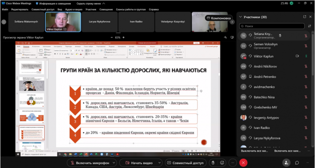 Доповідач, директор інституту Віктор Каплун, розпочав з основних принципів діяльності освітніх систем розвинених країн – неперервне навчання впродовж життя.