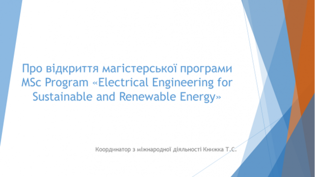Далі була доповідь координатора з міжнародної діяльності Тетяни Книжки про відкриття англомовної магістерської програми MSc Program «Electrical Engineering for Sustainable and Renewable Energy».