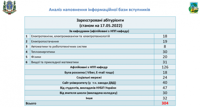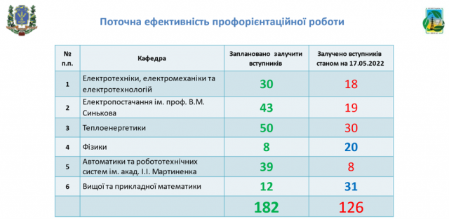 Як видно, колективам кафедр є над чим працювати. Директор інституту Віктор Каплун загострив увагу завідувачів кафедр на неприйнятно низькому рівні поточного виконання плану профорієнтаційної роботи. Ухвалили рішення терміново активізувати роботу НПП кафедр на профорієнтаційному майданчику. Для цього в інституті заплановані Дні відкритих дверей: 25 травня (онлайн) та 27 травня – очне спілкування зі вступниками у кампусі універчситету.