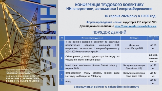Колектив ННІ енергетики, автоматики і енергозбереження готовий до вирішення поставлених завдань і вкотре доводить свою незламність перед викликами в умовах воєнного стану та продовжує здійснювати підготовку фахівців для відновлення і розбудови нашої держави.