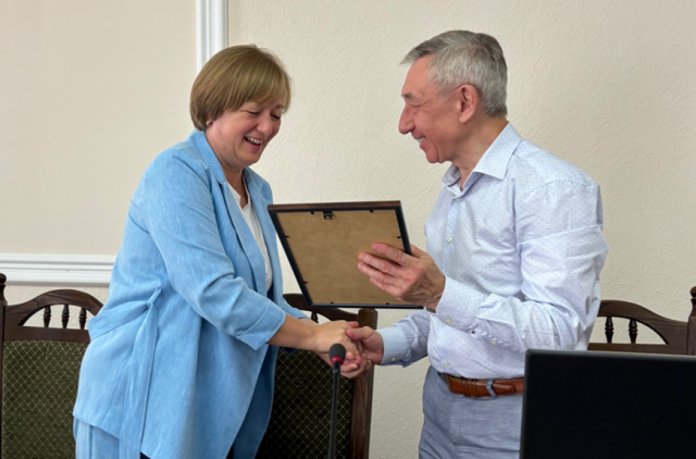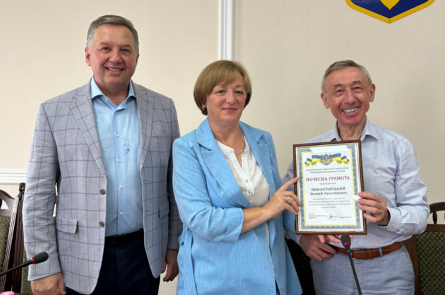 На завершення, Лариса Кліх вручила нагороду за покращення навчально-методичного комплексу та забезпечення підтримки здобувачів вищої освіти інституту представнику стейкхолдерів д.т.н. Зеновію МОНАСТИРСЬКОМУ.