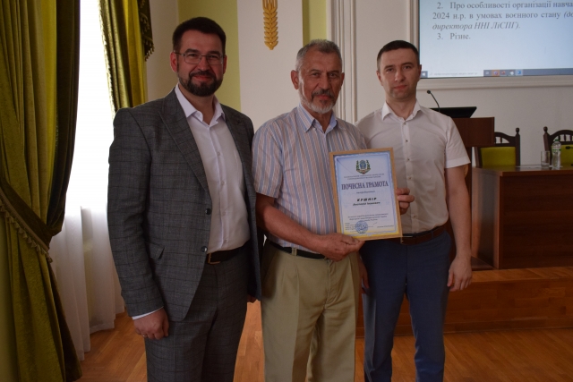 З нагоди ювілейних дат відзначено науково-педагогічних працівників та співробітників інституту. Почесною грамотою за заслуги перед Національним університетом біоресурсів і природокористування України та з нагоди 50-річчя нагороджено завідувача навчальної лабораторії «Інженерно-технічного забезпечення лісового комплексу» кафедри лісівництва – Андрія Петілова