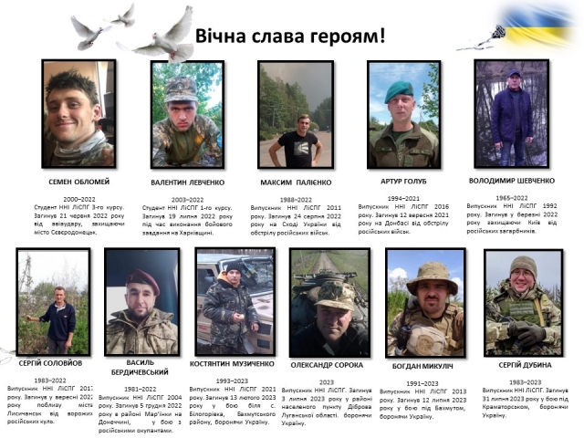Колектив інституту завжди пам'ятає, шанує героїв, студентів та випускників інституту які загинули захищаючи український народ, територіальну цілісність та суверенітет України.