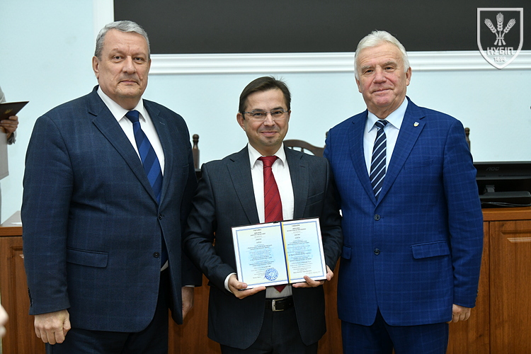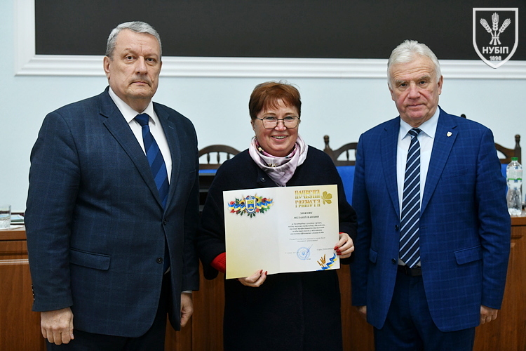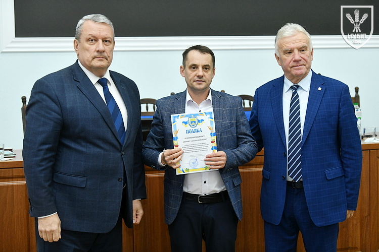 За традицією перед початком розгляду питань порядку денного ректор Вадим ТКАЧУК та голова вченої ради Станіслав НІКОЛАЄНКО вручили нагороди та відзнаки колегам. Почесною грамотою університету відзначені Меланія ХИЖНЯК та Петро ШЕВЧЕНКО, подякою Голосіївської районної в місті Києві державної адміністрації Антон КЛИМКОВЕЦЬ. Атестат професора отримали Алла КЛЕПКО та Ірина МАЙДАНЮК, доцента Олександр БАБИЧ, Людмила КОЛЬОСА, Валерій ЛОШКАЛ, Тетяна НАУМЕНКО, Олена СИРОТІНА, Олександр СУБІН. Дипломи докторів наук вручили Дмитру ЗАРУБІ та Катерині АЛЄКСЄЄВІЙ.