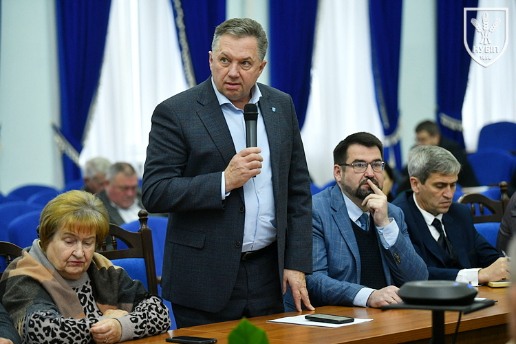 Ректор Вадим ТКАЧУК представив короткий звіт про діяльність у жовтні. Розпочав він з підтримки Збройних Сил України. Разом з профспілковою організацією надана допомога одному з підрозділів, де службу проходить наш викладач. Протягом місяця відбулися вибори керівників органів студентського самоврядування, Сенат Студентської організації очолила Маргарита БУЛКОТ. Пройшли День відкритих дверей для школярів Святошинського району столиці, День карєри. Відбулися акредитації низки освітніх програм, а за 30 програмами триває постакредитаційний моніторинг. Оновлений штатний розпис. У міжнародній діяльності відбувся 15 Форум ректорів та деканів європейської Асоціації університетів наук про життя (ICA), понад 220 студентів-громадян Китаю зараховані на навчання, проводились численні тренінги та семінари з участі в програмах академічного обміну. Системно реалізовувалася програма «Громадянин. Патріот. Фахівець», місяць насичений спортивними, культурними подіями. Університет отримав найвище визнання в акредитації наукової діяльності за третім напрямом. Навчально-дослідні господарства завершили сезон, провели належні осінні польові роботи, підготували до зимівлі худобу, закупили деяку сільськогосподарську техніку. Завтра своє 100-річчя відзначає Боярська лісова дослідна станція, яка також демонструє стабільні показники зростання. До Дня працівників освіти за поданням деканатів та дирекцій грошовими преміями відзначені наші колеги. Завершив виступ ректор Вадим ТКАЧУК спільними завданнями. Перше, відвідування занять студентами, моніторинг якості освітнього процесу. Друге, активно проводити профорієнтаційну роботу. Трете, запросити партнерів, стейкголдерів, представників бізнесу, освітньої і наукової спільноти до участі в Форумі SEB-2025, який відбудеться 11 листопада.