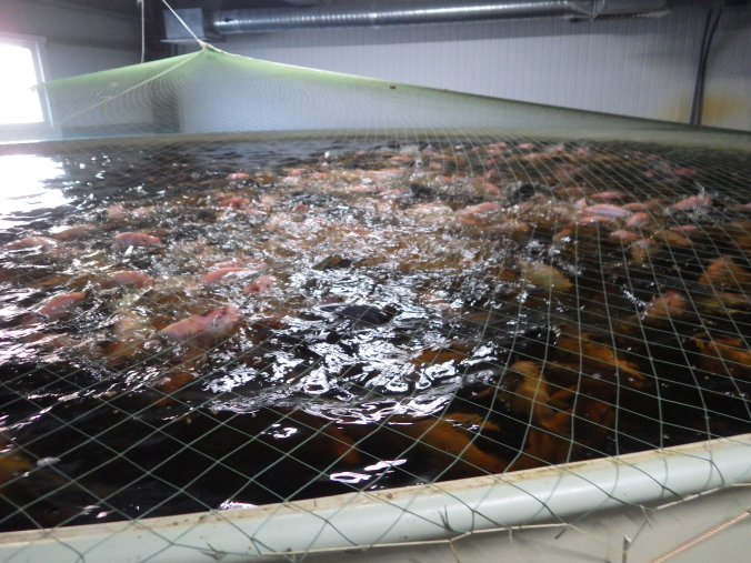 Фото 4, 5. Перше наочне знайомство студентів з тиляпіями і кларієвим сомом