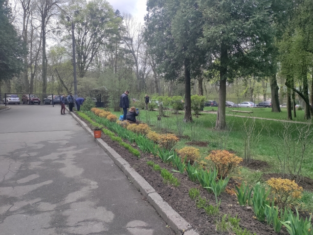 Співробітники із задоволенням долучилися до весняних робіт. До влаштування пристовбурових лунок біля дерев та кущів залучили чоловіків, а жіноцтву віддали найпрекраснішу та найприємнішу частину роботу – створення квітників з ранньовесняних рослин. Особливе захоплення викликала опція з формування топіарних елементів з туї, спірей, ялівців.