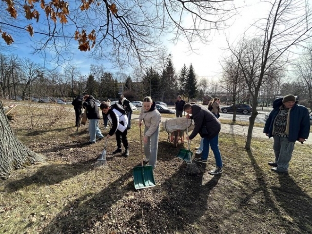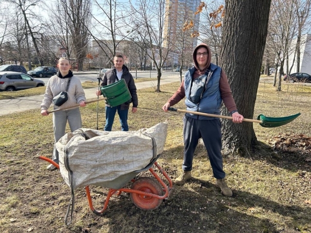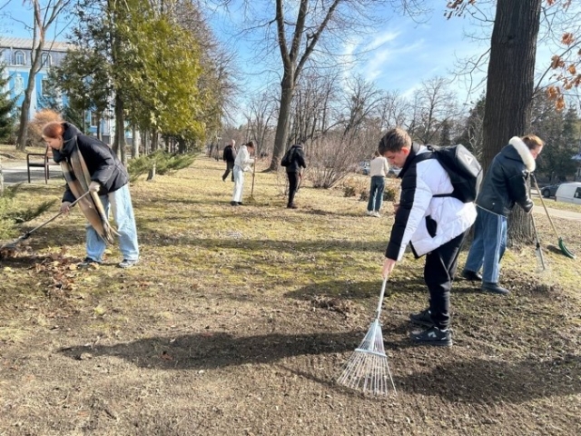 6 березня із появою приємного весняного тепла та яскравими променями сонця студенти першого та другого курсів за підтримки Голови Екологічного сектору Агробіологічного факультету МАЛІКА Єгора та голови ССО Агробіологічного факультету БУЛКОТ Маргарити з ентузіазмом та завзяттям взялися до прибирання прилеглої території біля четвертого навчального корпусу НУБіП в рамках підготовки до флешмобу з читання віршів Тараса Шевченка.